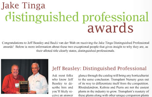 A Year of Good Plants and Good Plantings .... The Beasleys are famous for their deciduous azaleas, and deservedly so with Transplant Nursery long being recognized as a mecca for these plants. Although the acquisitions donated by the Beasleys to the Arboretum are too numerous for me to discuss them all in detail here, the following represents the range of hybrids and species selections that were brought back. In 1999, Transplant Nursery debuted their "Maid in the Shade" collection of hybrid native azaleas selected for floral fragrance and plant performance in shade gardens.... The full article is here.