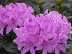 HIGH The major planting requirement for these and other ericaceous plants is a porous, well drained, acidic soil with high, broken shade. The north or east exposure of any home is a suitable planting site as the plants need protection from hot, blistering sun,but they need some sun and light for good blooms. A good sized planting hole should be dug and a bark or woods earth mixture incorporated into the soil. The root ball should be loosened so the roots can good into the surrounding soil. The plant should be planted in a raised mounds with the bottom of the ball at ground level and mulches with 3" to 4" of pine bark or other suitable organic mulch. Mulching will conserve moisture and will help keep the roots and soil cool. Never cultivate with a hoe as the roots are shallow. Fertilize lightly in early Spring or Summer - never in late Fall. Water well the first season until the plant becomes established. These plants have a shallow root system and in extended hot and dry conditions may need additional water. Our spray and fertilizer schedule is right here. |